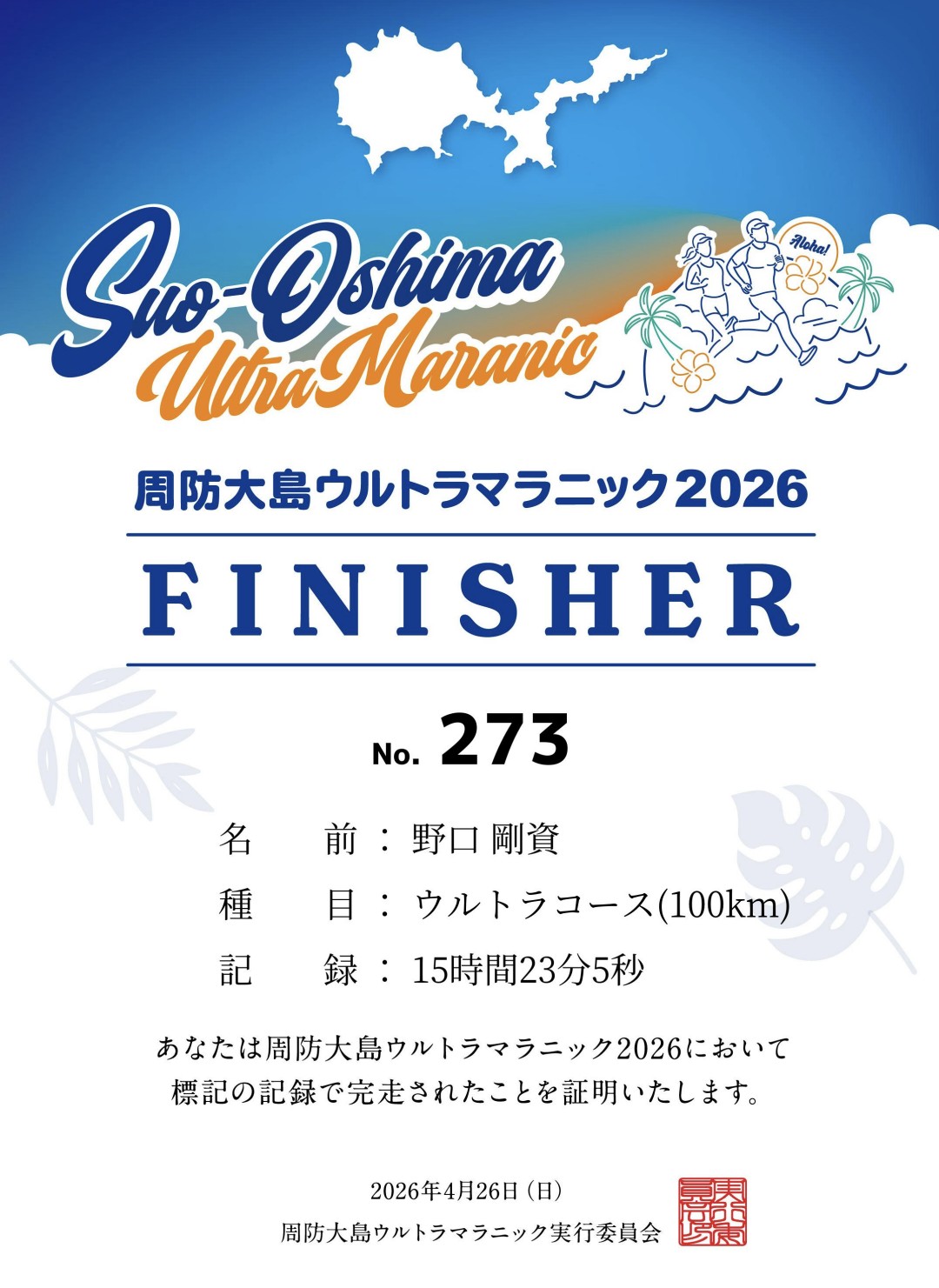 とびしま街道ウルトラマラニック コメントはまだありません | ランニング 1月以来の大会ですが とびしま街道ウルトラマラニック 100キロ完走して来ました 2年ぶり2回目 ウルトラマラソンで2回完走は始めてですが 山、海、橋の眺め良し エイドの食事も美味しくて最高でした 年々完走タイムが長くな […] Read More »