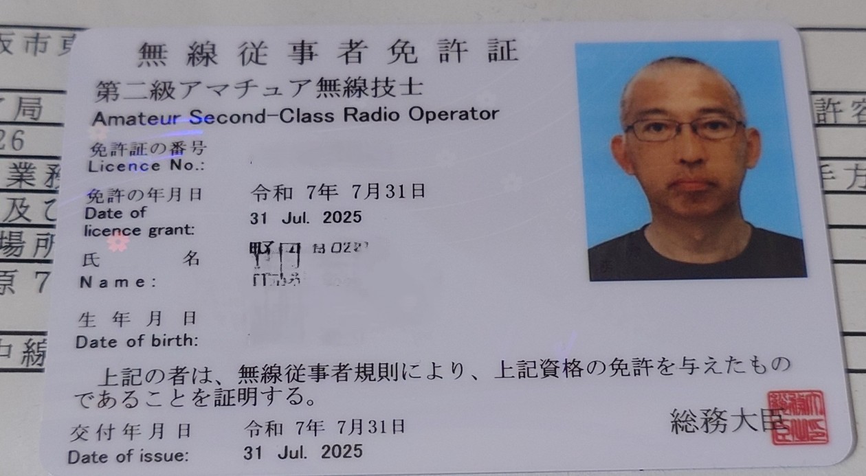 2級アマチュア無線技師免許証 コメントはまだありません | 未分類 本日届きました! 今回は「総務大臣」となっています 3級は「近畿総合通信局長」 4級は「東海総合通信局長」でした 因みに 4級は養成講座受講から平成20年7月9日に取得 3級は独学取得で令和6年12月9日に取得 2級はe […] Read More »